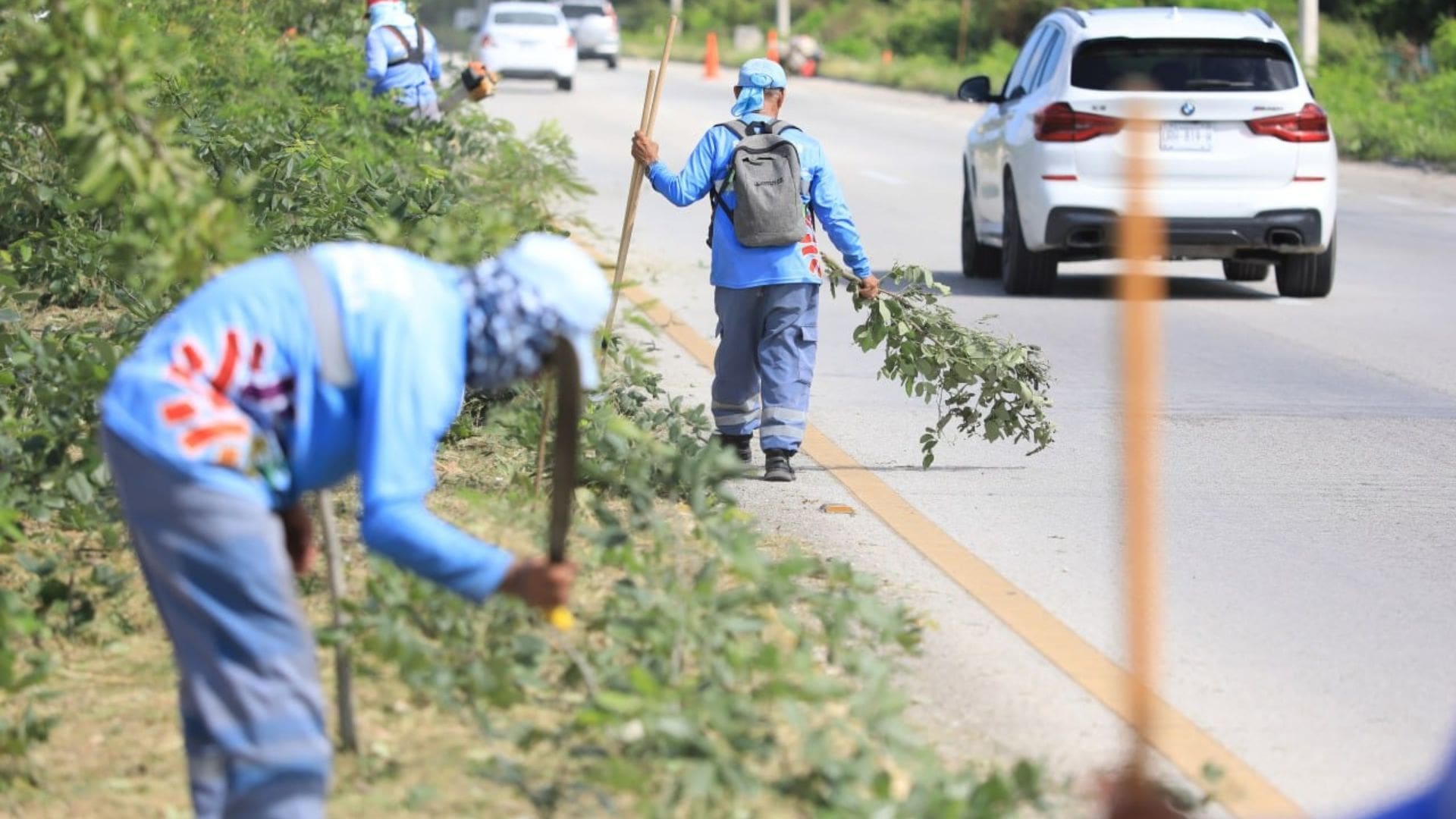 “Vamos renovando y avanzado con el mantenimiento permanente a los dos tramos de la carretera federal, norte Playa – Puerto Morelos y sur Akumal–Playa. El trabajo consiste en chapeo, poda, deshierbe y acomodo de piedras de manera que se vea presentable y permitan la visibilidad” puntualizó el secretario de Servicios Públicos Benny Millán.